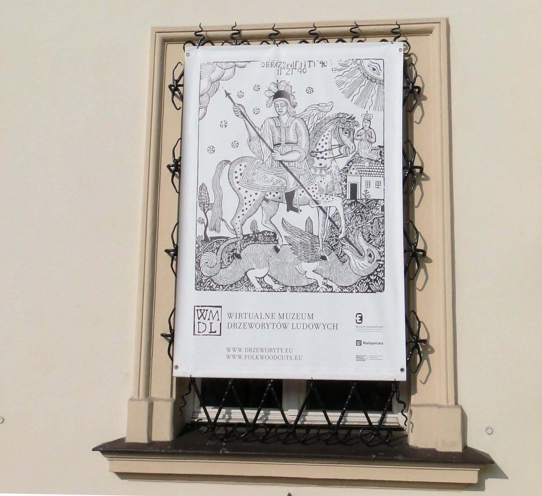 Reklama Wirtualnego Muzeum Drzeworytów Ludowych w Krakowie 2013 rok sfotografowana podczas jednej z wizyt w Krakowie i Muzeum Etnograficznym.
