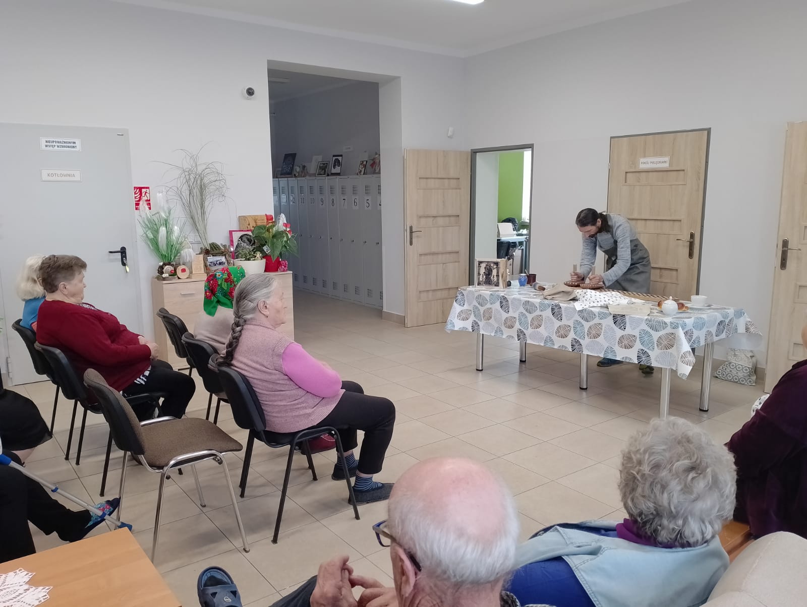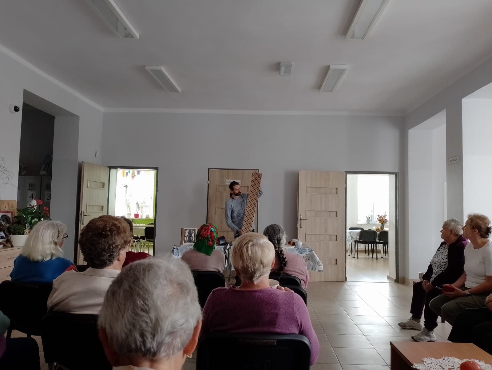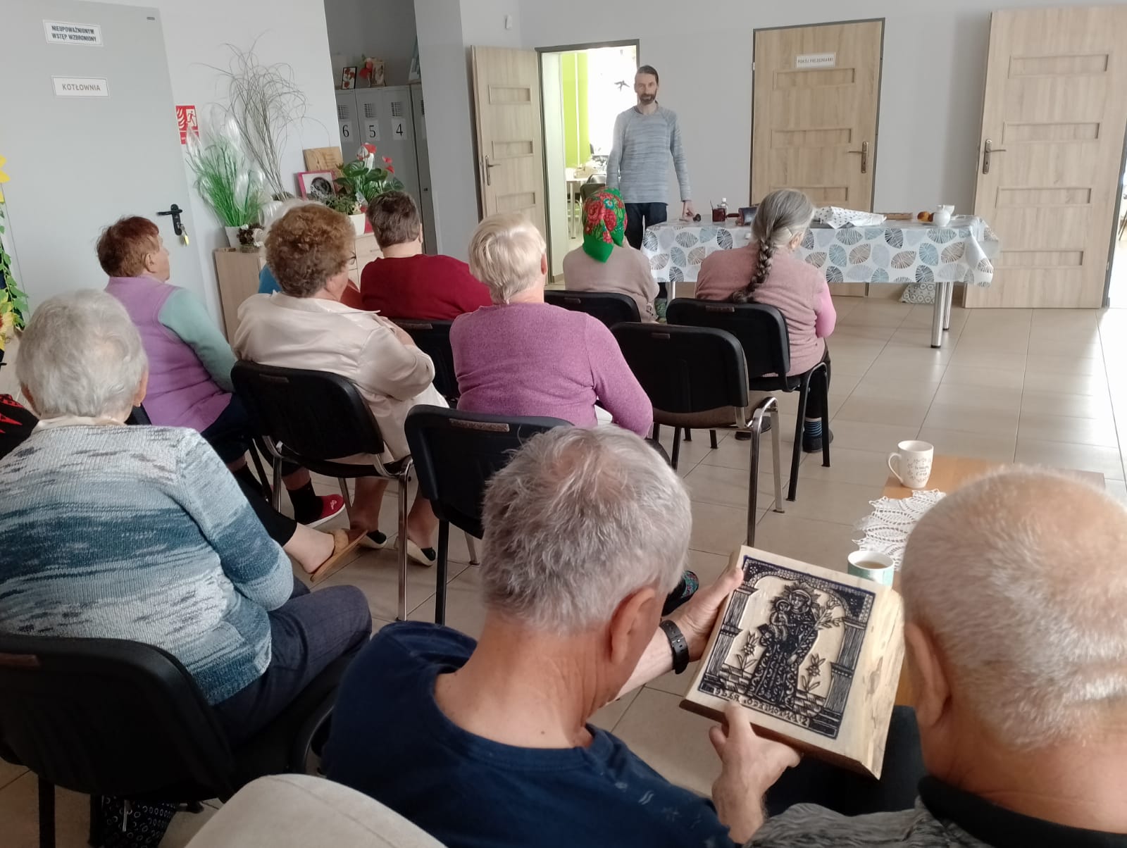 Uczestnicy spotkania poznali historię drzeworytnictwa w oparciu o historię Płazowa i historię zadruku tkanin. Spotkanie prowadził Grzegorz Ciećka.